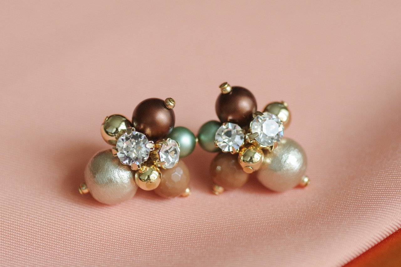 LANKAGRACEベーシックプログラムで作成するピアス又はイヤリングです。(パーソナルカラーイエローベース/オータム)の方にオススメな配色でキットをお作りしています。
